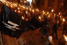 Украинские националисты отметили очередную годовщину со дня рождения лидера Организации украинских националистов Степана Бандеры факельным шествием. Участники шествия развернули баннеры с лозунгами типа "Бандера придет — порядок наведет!" и "Вон московских оккупантов! Вон московских холуев!". Идя по Крещатику, они скандировали: "Хватит бухать — пора воевать!" и "Москалей на ножи!".