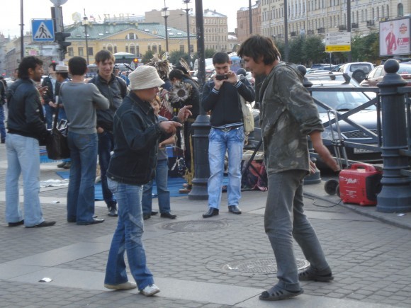 Из глубинки - в столицу. Культурную, Северную. Питер, Сенная площадь. Выступают музыканты из Венесуэлы, играют развеселую свою народную музыку. Толпа собралась. Но не вокруг венесуэльцев - вокруг двух танцующих существ: грязных, спитых попрошаек неопределенного пола и возраста. Толпа целиком состоит из кавказцев: снимают эти позорные качающиеся па на видео, хохочут, кто постарше головой качает, кто и улыбается с презрением. А кавказские дети просто от души веселятся. Оставшиеся русские соотечественники гостей Питера проходят, понурив голову, мимо.